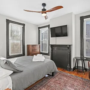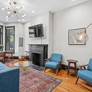 Spacious, Historic Logan Circle Rowhouse provides guests with access to an adjoining terrace, a balcony and a sitting area furnished with a sofa and a work desk, and amenities like air-conditioning, ensuring a pleasant and relaxing stay. The accommodation also offers a flat-screen TV with satellite channels, as well as safety amenities, including smoke detectors, for your peace of mind. A tub, a separate toilet and a shower are available the bathroom.